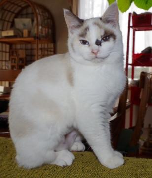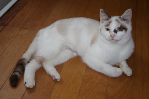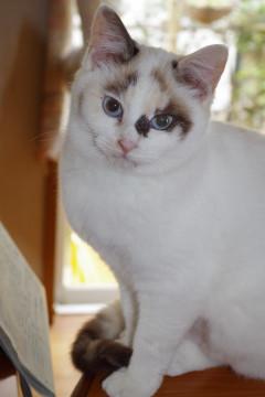毛色:茶白ですが茶色の部分は徐々に焦げ茶に変化して来ると思います。ブルーアイのきれいな子です。