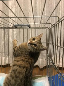 近所の方からの依頼でお外に居た子を昨年5月に保護して手術をし、家猫修行を済ませました。
