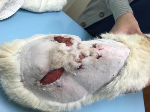 背中から腰に酷い怪我をしていましたので、保護しましたが、