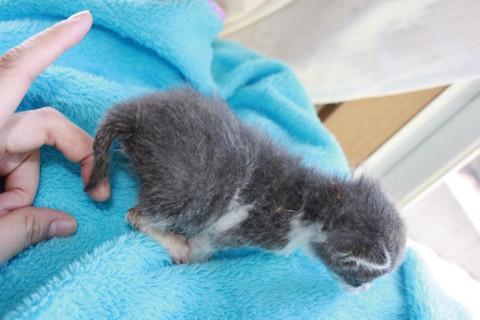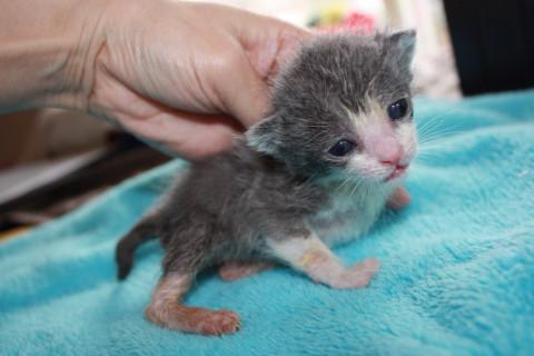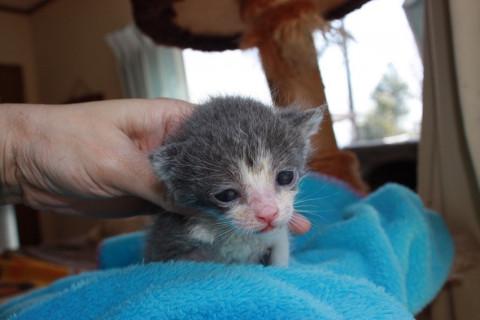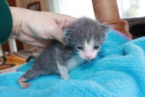 かわいい灰白の男の子びしゃもんくんです。とても元気でミルクも上手に飲みます。短いしっぽがキュートです。