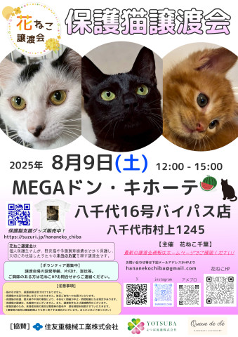 花ねこ譲渡会は、個人保護主さんが保護して大切にお世話した猫の「本当のお家」を探す譲渡会です。是非一度遊びに来てください。