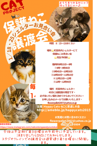 こちらは猫ちゃんの譲渡会イベント情報を掲載するページです。
