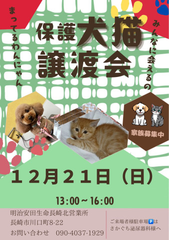 12月は3回里親会を開催します! 7日、ムサシ名取店 14日、寺岡住宅展示場ポルク(ポスターに載ってませんが開催します) 21日、ムサシ名取店 ぜひ皆さん、ねこたちに会いに来てくださいね✨