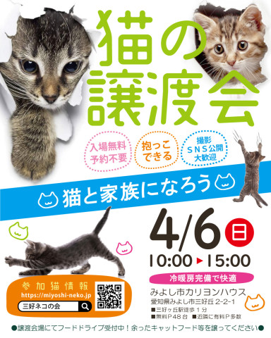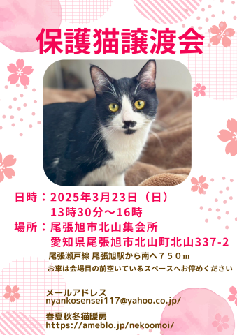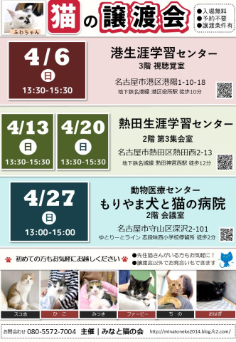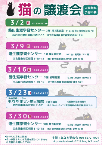 ※参加猫、匹数は開催1週間くらい前にこちらでお知らせします。