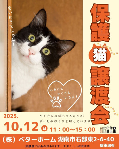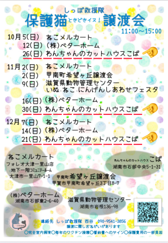 こちらは猫ちゃんの譲渡会イベント情報を掲載するページです。