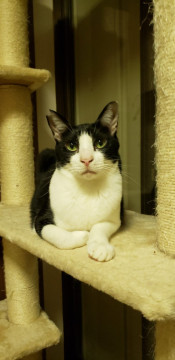 おもちゃが大好きで保護猫部屋では一番に飛んできて遊んでくれます!