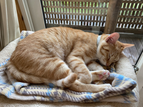 子猫時代に里親探しが出来ず、もうすぐ2歳になりますが、好奇心旺盛でとても人懐っこい子です。