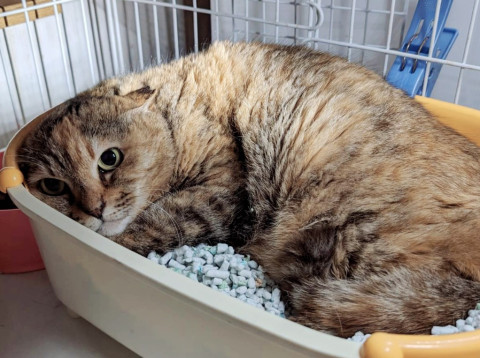 ちょっと怖がり。お魚大好き。隠れてばかりでしたが、すんなり撫でさせてくれるようになりました。撫でるのをやめると手を出してもっと…と催促します。抱っこは苦手。