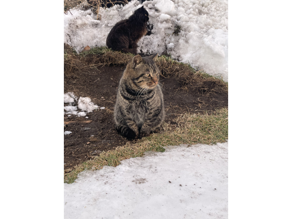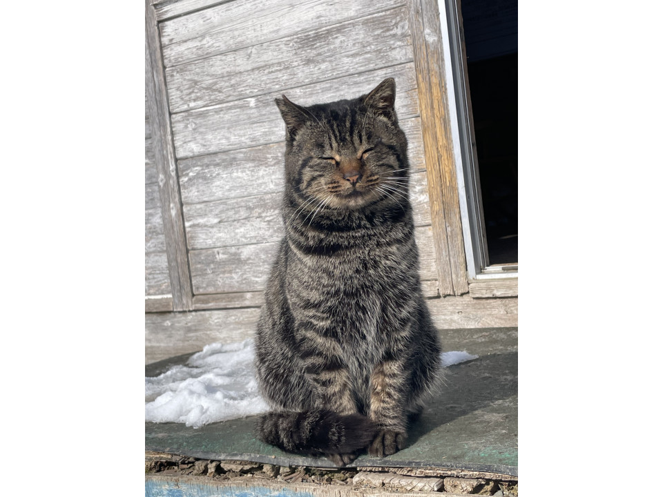 牧場の牛舎内で生まれたのでずっと外猫ですが、人慣れしており触らせてくれます。