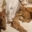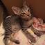 帰ってきた当日、一人の子は相当おびえた居ましたが、昨夜辺りはネコじゃらしに反応、今日、3日目は二人ともベタベタ状態です故、ご安心ください。もう一人の子は自分が中心とばかり駆け回っています。今後も成長過程を お送り致しますので待って居て下さいね。