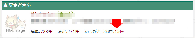 里親詳細ページにある「募集者さん」からその掲載者への「ありがとうの声(スマホは吹き出しアイコン)」から閲覧する事が出来ます。