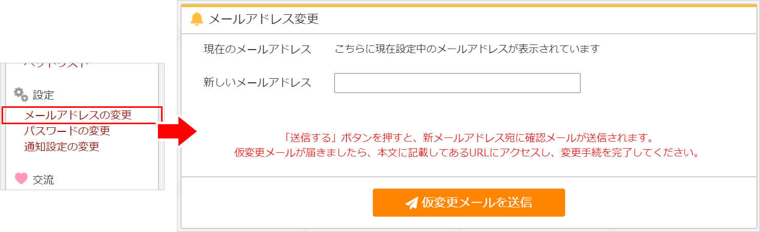 新メールアドレス宛に確認メールが送信されますので、仮変更メールが届きましたら、本文に記載してあるURLにアクセスし、変更手続を完了してください。 -