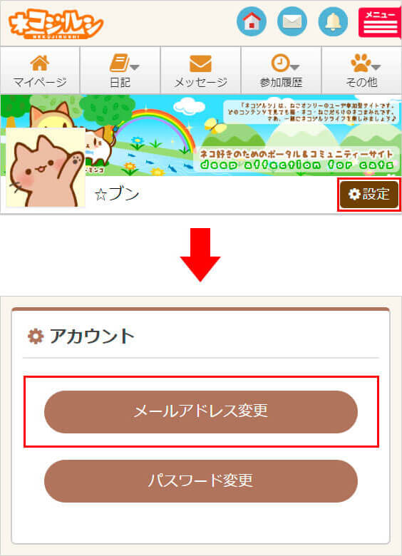 お急ぎの方は右記リンクから直接変更ページに移動してください⇒メールアドレス変更する