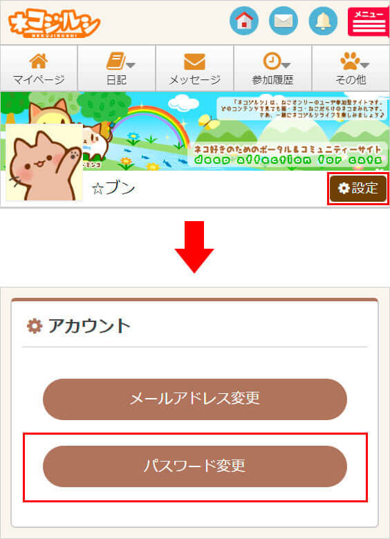 お急ぎの方は右記リンクから直接変更ページに移動してください⇒パスワード変更する