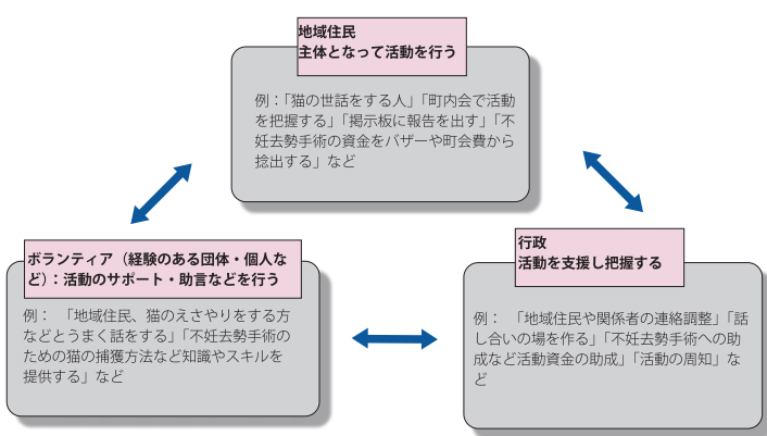 「行政とボランティアの役割分担」地域猫活動地は94箇所、「にゃんでも相談会の実施」