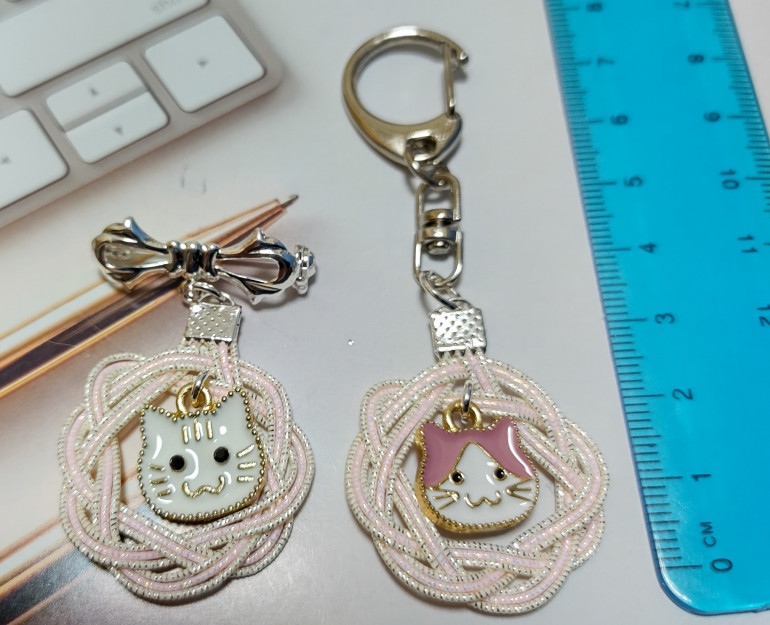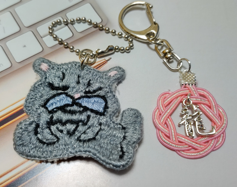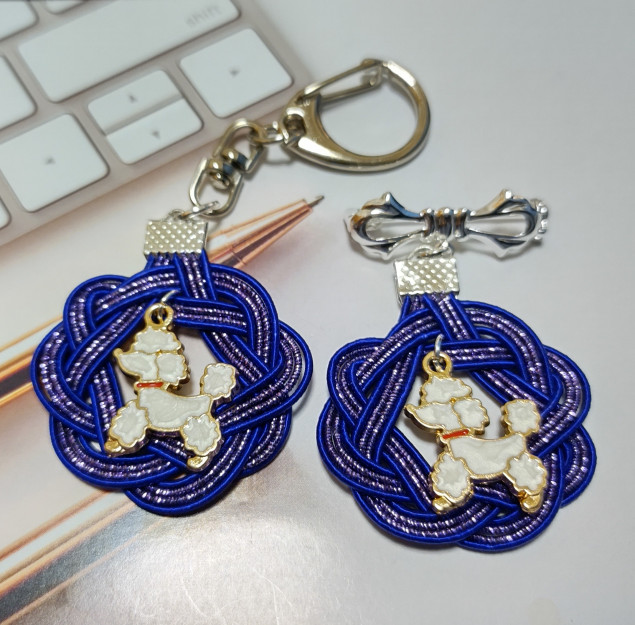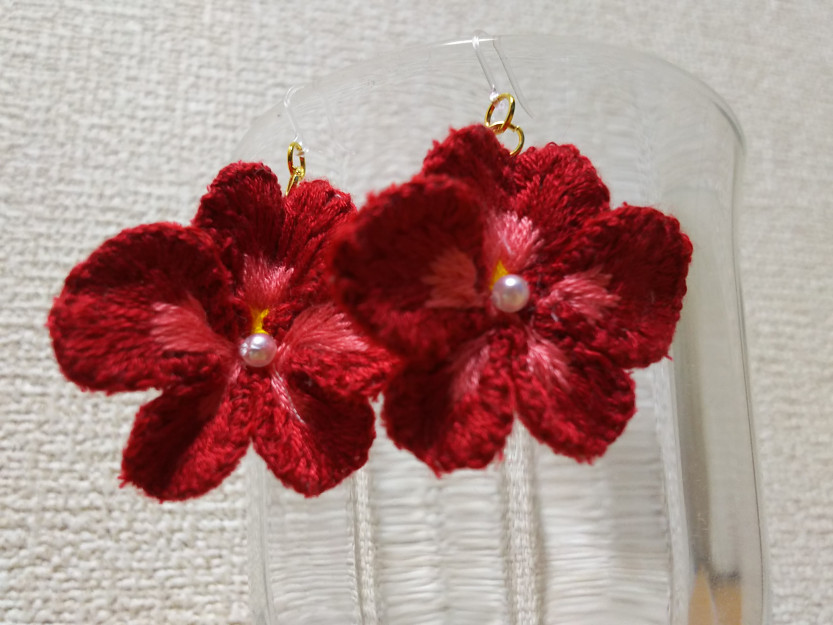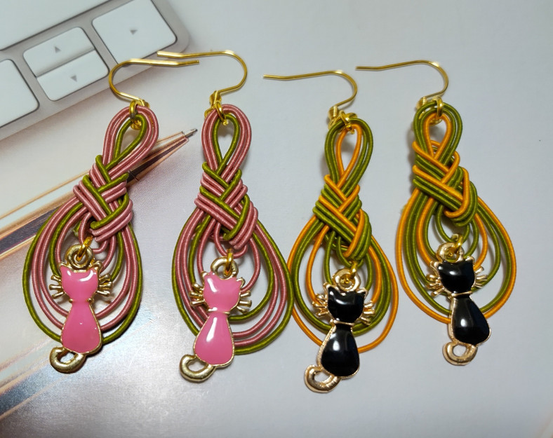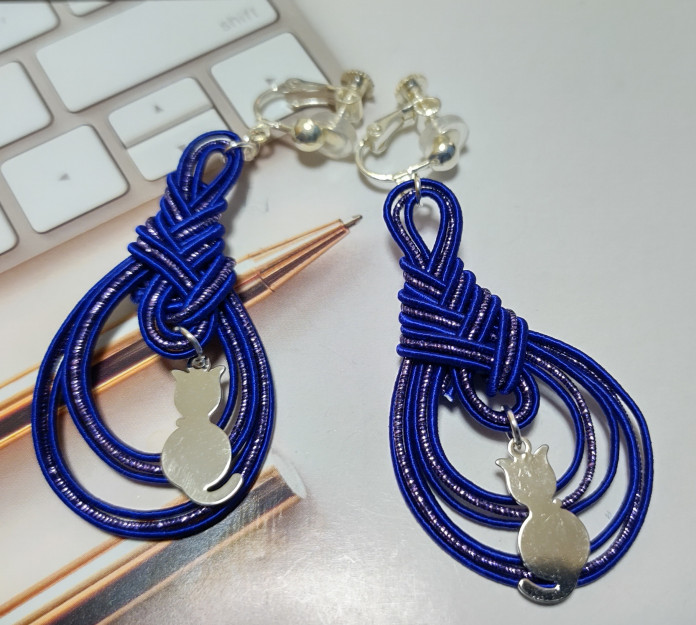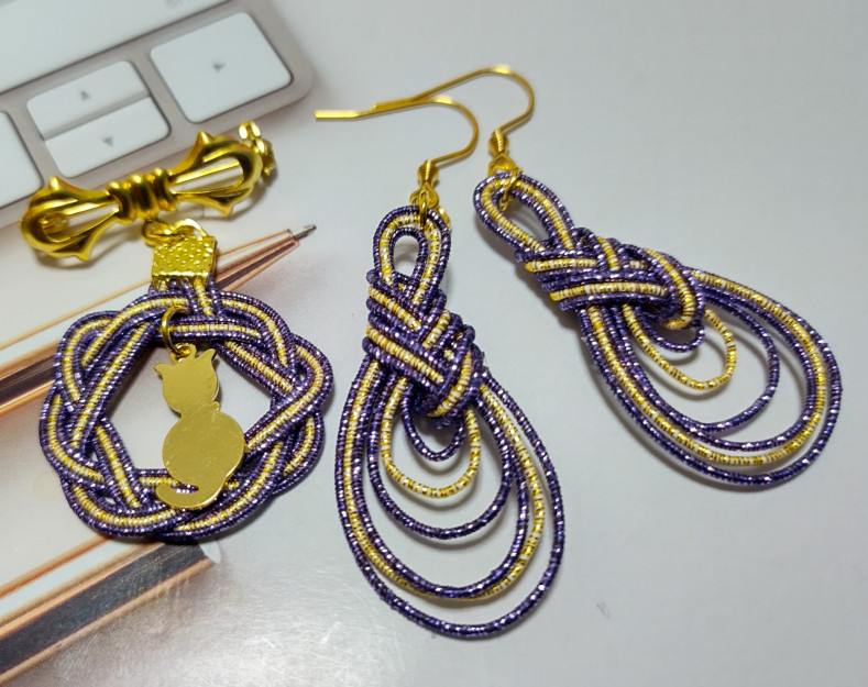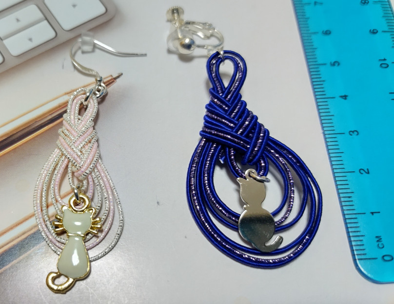 水引のアクセサリー、濃紺に見えますが、紫なんですか?どちらも白とステンレスなので映えますね👍️
