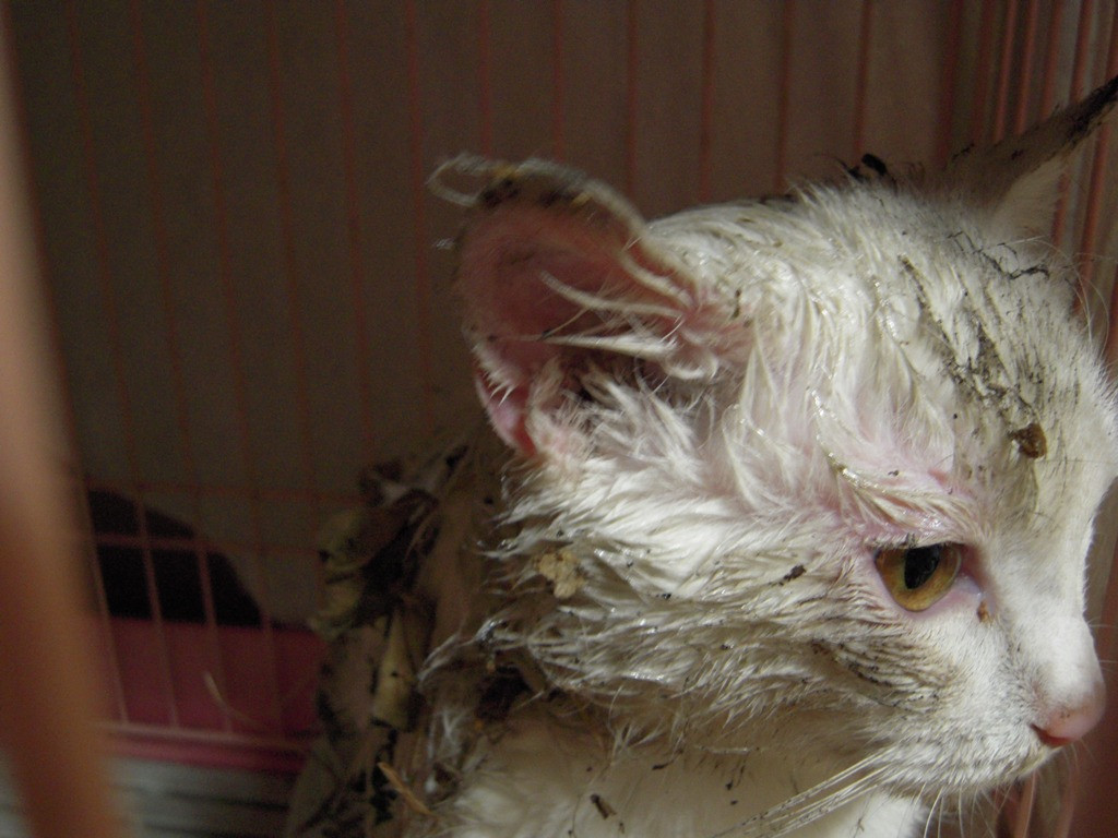 犯人を探すより、この子の保護&治療が優先かと思います。