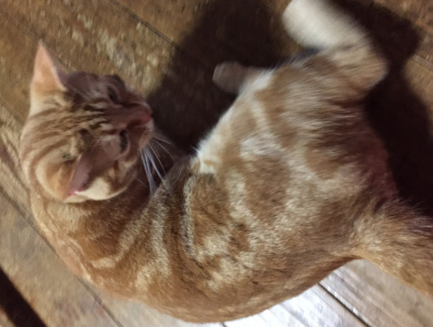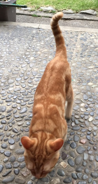 大変人懐っこい猫で、よく足にじゃれ付きますが、抱こうとすると嫌がります。