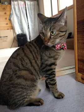 ※写真では首輪をしていますが、12日に庭先で発見したため、現在装着していません。