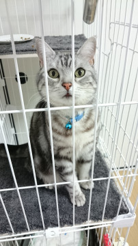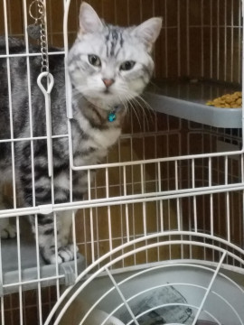 白と水色の首輪をつけていますが、ひっかかったらとれてしまうタイプなので、現在ついているかわかりません。