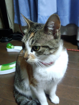 今は、ノミ取り用の首輪をしています。