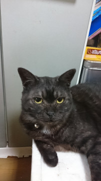 いつも涙目の黒ねこです 人なっつこいです 鳴き声が子猫のようにかわいいです