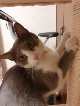 家族にはよくじゃれますが、外に出たり新しい環境だととても大人しい猫です。(怯えたりはそれほどしません)