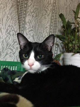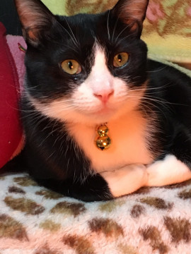 黒白ネコ 活発 人懐っこい リボン状首輪に鈴