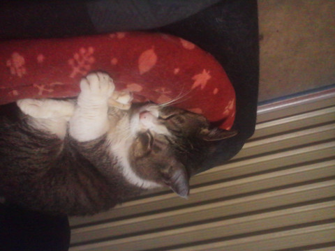 昨日 家から出て行く姿を見つけましたが・・ 他の野良猫(キジトラ)が 食べていたようです。