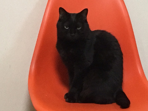 割りと小柄なクロネコで、20センチほどのしっぽの途中が少し曲がってます。