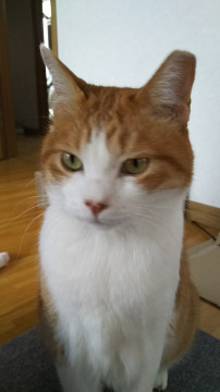 左耳にカットあり。右の骨盤がないため右後ろ足がビッコで低い所しかジャンプできません。