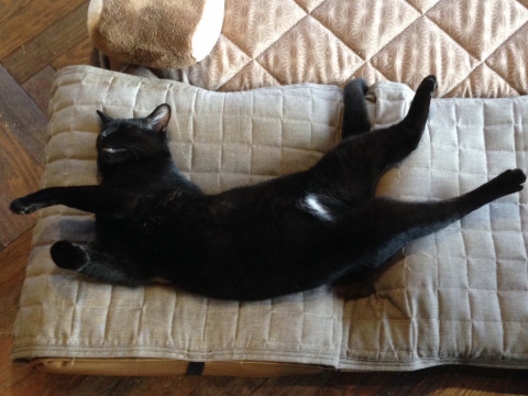 6キロあるので 大きめですが、野良猫のように顔は大きく張ってないので中型に見えるかも。