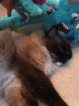 黒い顔、ブラッシングが嫌いなので毛玉があります。