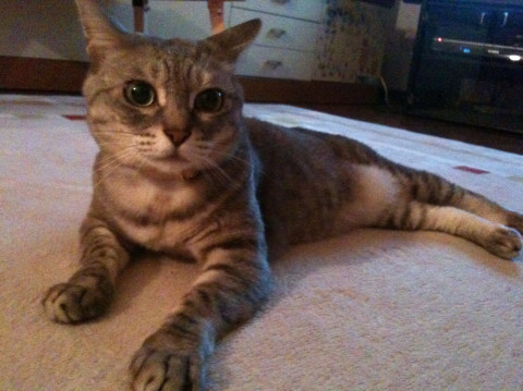 いなくなって4日後の今朝、開けていたドアからひょっこり、無事に帰ってきました!少し怒っているようでふが、元気そうです。