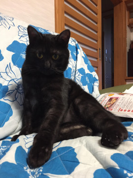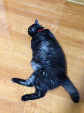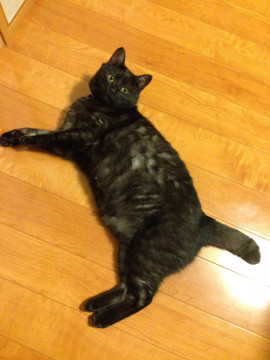 ・黒猫(中の毛が白色のため、しましま柄にも見えます)