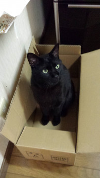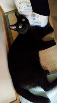 体がそこそこ大きい黒猫です。紺色に青い星の首輪つけてます。人懐っこい方です。何か訴えるときは甲高い声で泣きます!