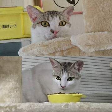 〇性格は馴れたらヤンチャな面もあるのですがとても引っ込み思案で臆病、放っておくと他の猫にエサを取られてしまう感じの女の¥子です。