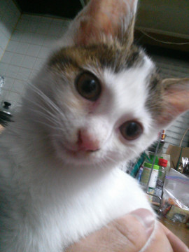 もと野良の子猫で、用水路に落ちていたのを助けました。