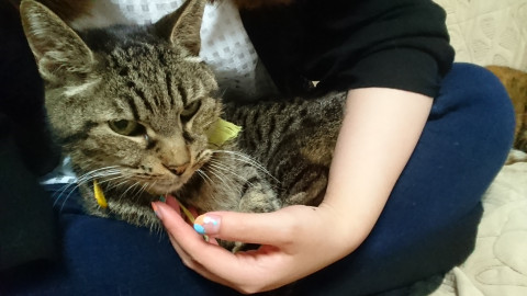 8日ぶりの帰宅でガリガリに痩せていますが元気そうで餌もバクバク食べてます!