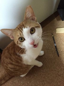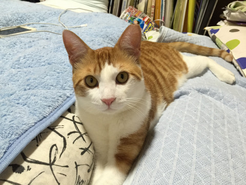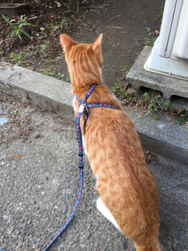 去勢済み。背中側が茶色にトラ模様、お腹側が真っ白な猫ちゃんです。身内以外の人には慣れていないため、怖がりです。声は低く聞きやすい声だと思います。左耳をよく見ると先っぽが欠けています。首輪はつけていません。尻尾がすらっと長いのも特徴かと思います。