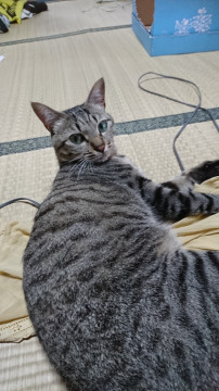 近所に猫がいるので、おそらく追いやられてしまい、現在行方不明となっています。些細な情報でも構いませんので、見慣れないキジトラを発見した際には連絡お願いします。