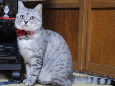 鈴付きと赤いバンダナの2種類の首輪(写真のものとは違います)をしていて、