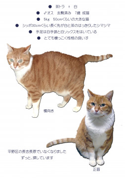 平野区の長吉長原の南大阪動物医療センター前でいなくなりました。