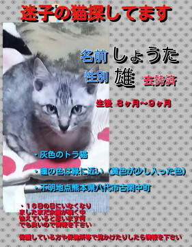 台風が近づいているので早く見つけたいです御協力お願いします住所は八代市古閑中町です