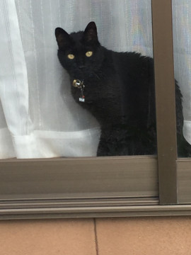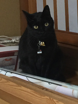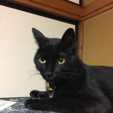 真っ黒、金眼、去勢済み、4.7キロ、ビビりな男の子