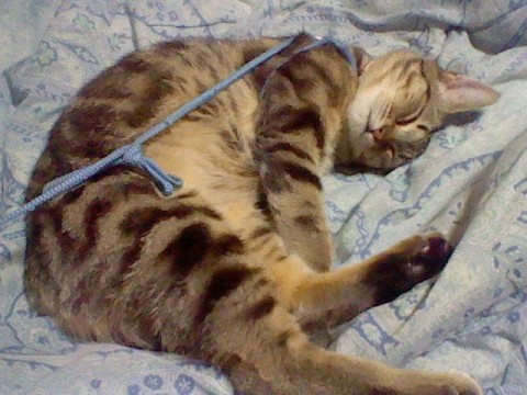出てって7日目のこと、朝方4時半頃、鈴の音がしたのでふっと気になり起きました。家の人は蚊の音だと言いましたが、私は鈴の音に聞こえました。トイレに行こうと、ドアを開けたらかすれた声でニャー♪と玄関で声がし鈴の音もしました。モカでした。玄関はネコが入れる分だけ開けてあったので、そこから帰ってきました。ほんとうにありがとうございました