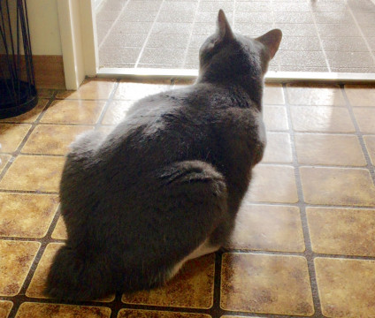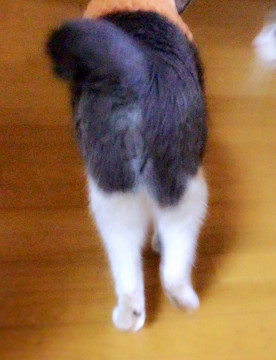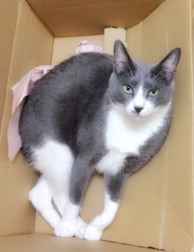 グレー白のはちわれ。鼻の横に小さなブチ 首輪無し