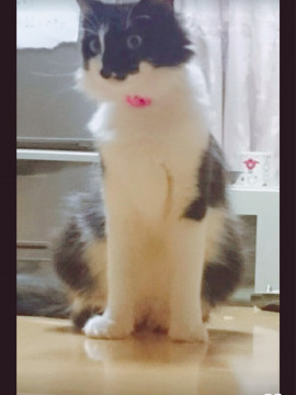 顔は黒毛ですが右側に白毛少しあります。