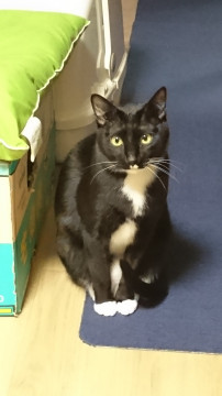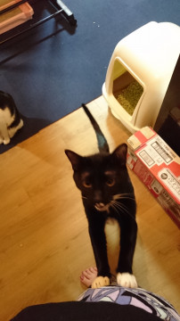 黒猫白靴下(短)、オス去勢済み、鼻の下に白点、