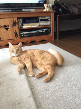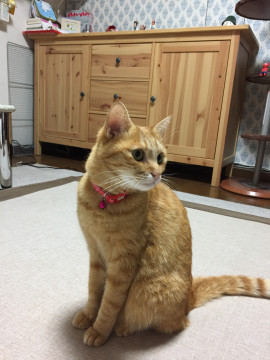 あまり大きな声で鳴かない、人見知りのおとなしい茶トラです。